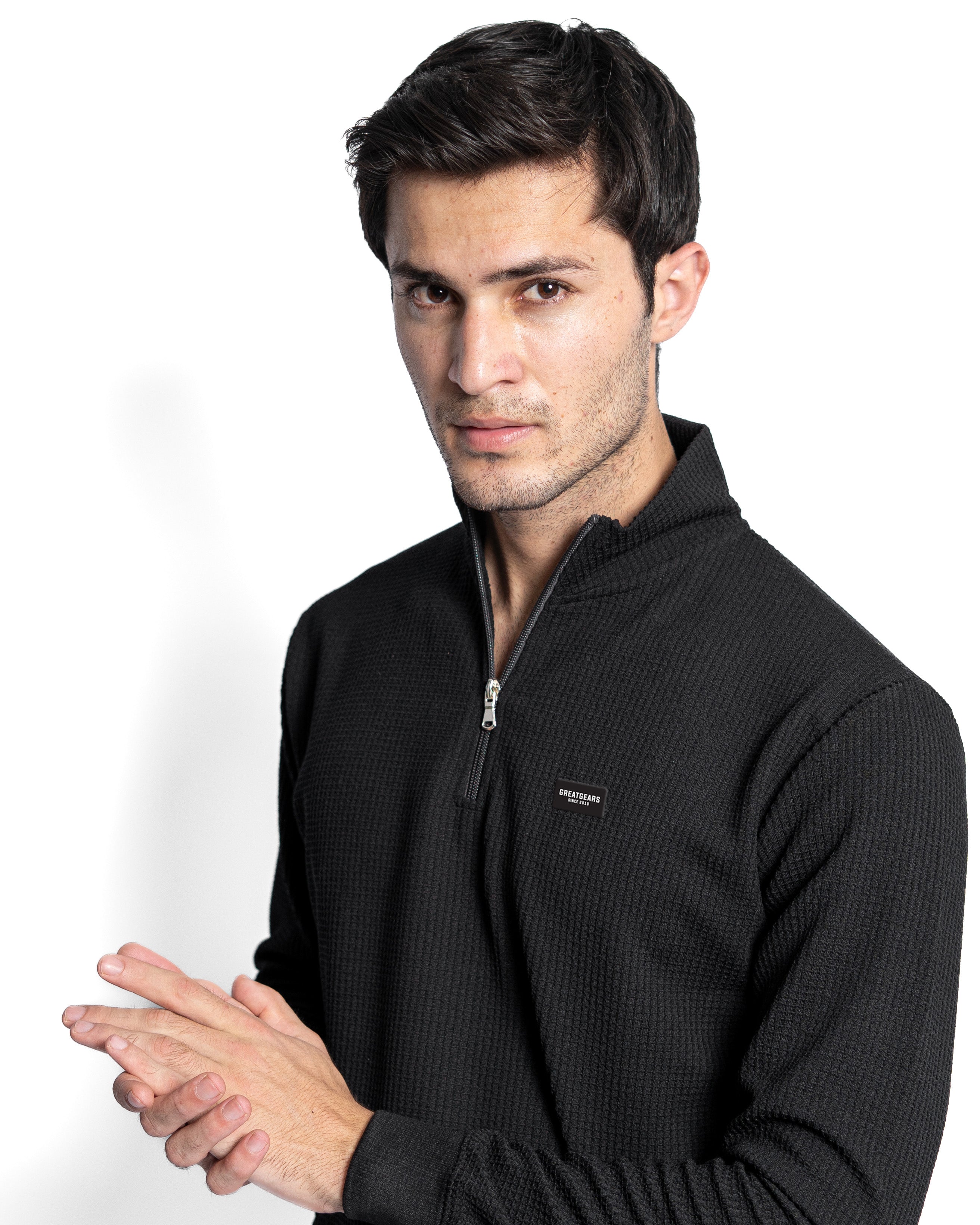 This Green Textured Quarter-Zip Pullover combines comfort with a clean, athletic look. Made from a soft, waffle-textured fabric, it offers lightweight warmth and a breathable feel. The stand-up collar with a smooth quarter-zip adds versatility for layering, while the front kangaroo pocket gives it a casual, functional touch. Finished with a small chest patch for a minimalist, modern style — perfect for everyday wear, workouts, or outdoor activities.